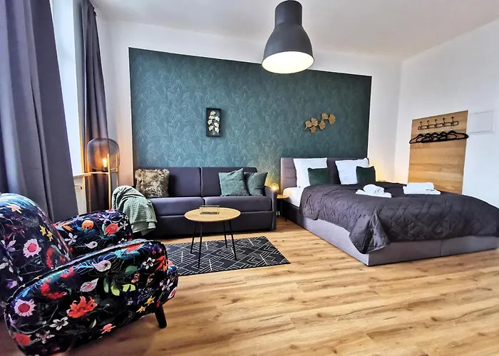 Druckereimuseum und Schaudepot im Benaryspeicher ist ungefähr 400 Meter von dem 35 m^2 großen Bohnapartments - Munze Im Bruhl - Alte Oper - Theater - Wlan entfernt, während sich Alte Oper Erfurt in der Nähe befindet. Das Apartment bietet Ausblicke auf den Garten.